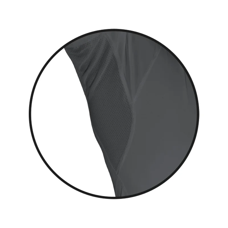 Debajo de la axila posee una malla elasticada, lo que brinda mayor respirabilidad a la prenda.