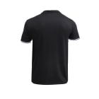 La polera de Fútbol Zayn está confeccionada con tela 100% poliéster respirable. Posee una franja vertical al costado y el cuello tiene terminación en V, con solapas, y tapa costura internamente, con refuerzos vivos en cuello y mangas, lo que da elegancia a la prenda.
